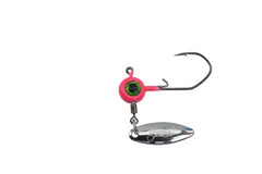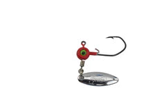 The Slasher Spin Jig head is a premium quality jig head designed to be the ultimate crappie jig head. With a silver willow leaf blade the pill shaped design gives it a dancing/slashing action when jigged in the water. It features rock hard, super bright paint and realistic 3D eyes. A custom made wire keeper holds the plastics on and won’t tear them up or turn them loose. The hook is a super sharp Jenko Reaper hook that was designed specifically for this head. It has just the right amount of bend to help you come loose from those brush piles and hangs, but plenty of power to bring in those trophy size fish. The white color features Glow eyes. All Slashers come 'ready to tie on' with hook eyes clean of paint. Available in 1/32 head with #4 light wire sickle hook, 1/16, 1/8, and 1/4 ounce with #2 light wire sickle hook, and 6 different colors. All sizes are 3 per pack.